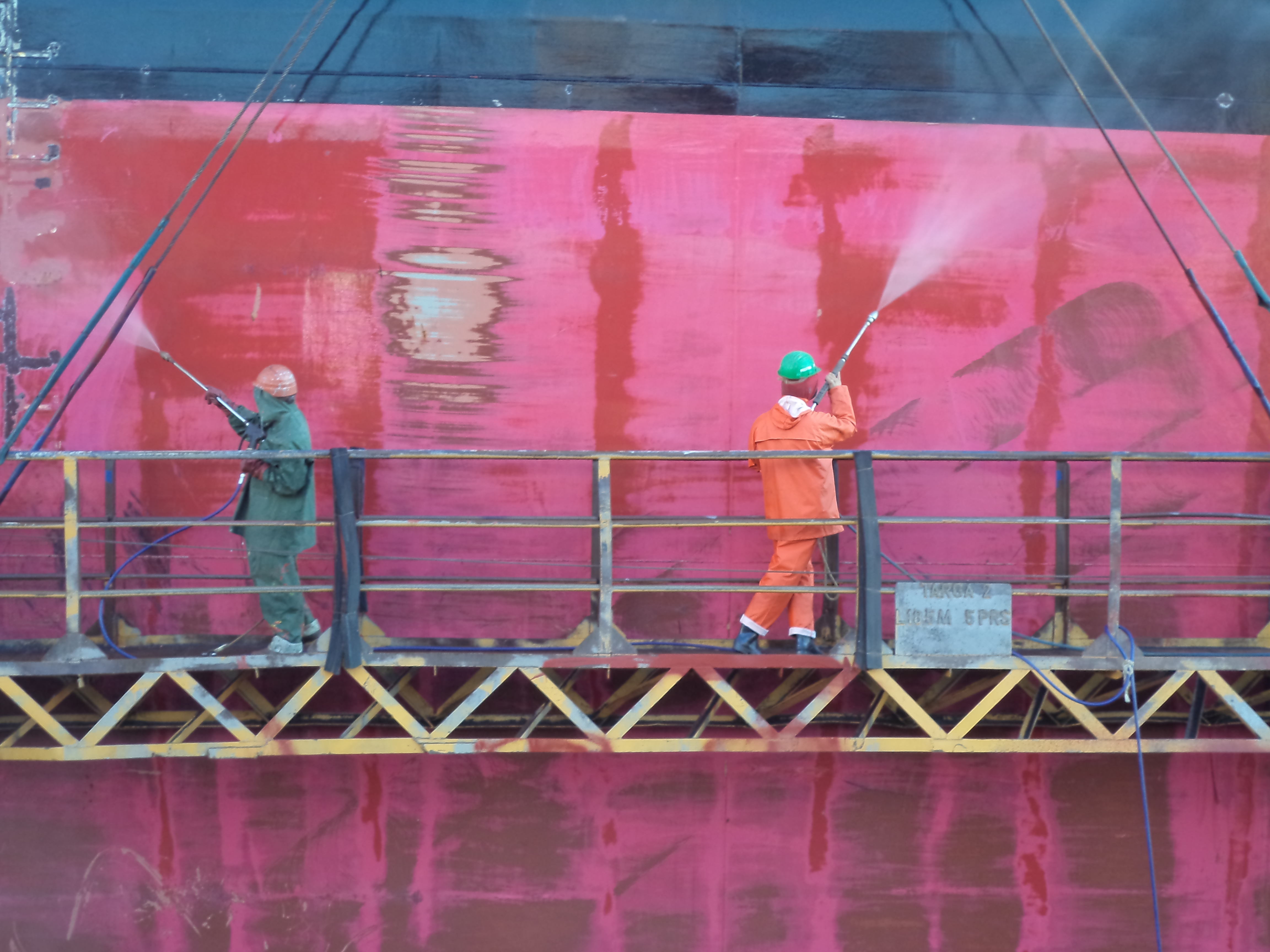 Nous faisons des lavages de coques de bateau avec de l'eau fraîche à haute pression ainsi que des sablages à l'eau sur demande.